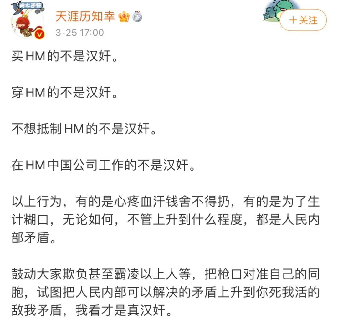 既然烧掉、扔掉HM、耐克的人,都是深明大义的爱国者。